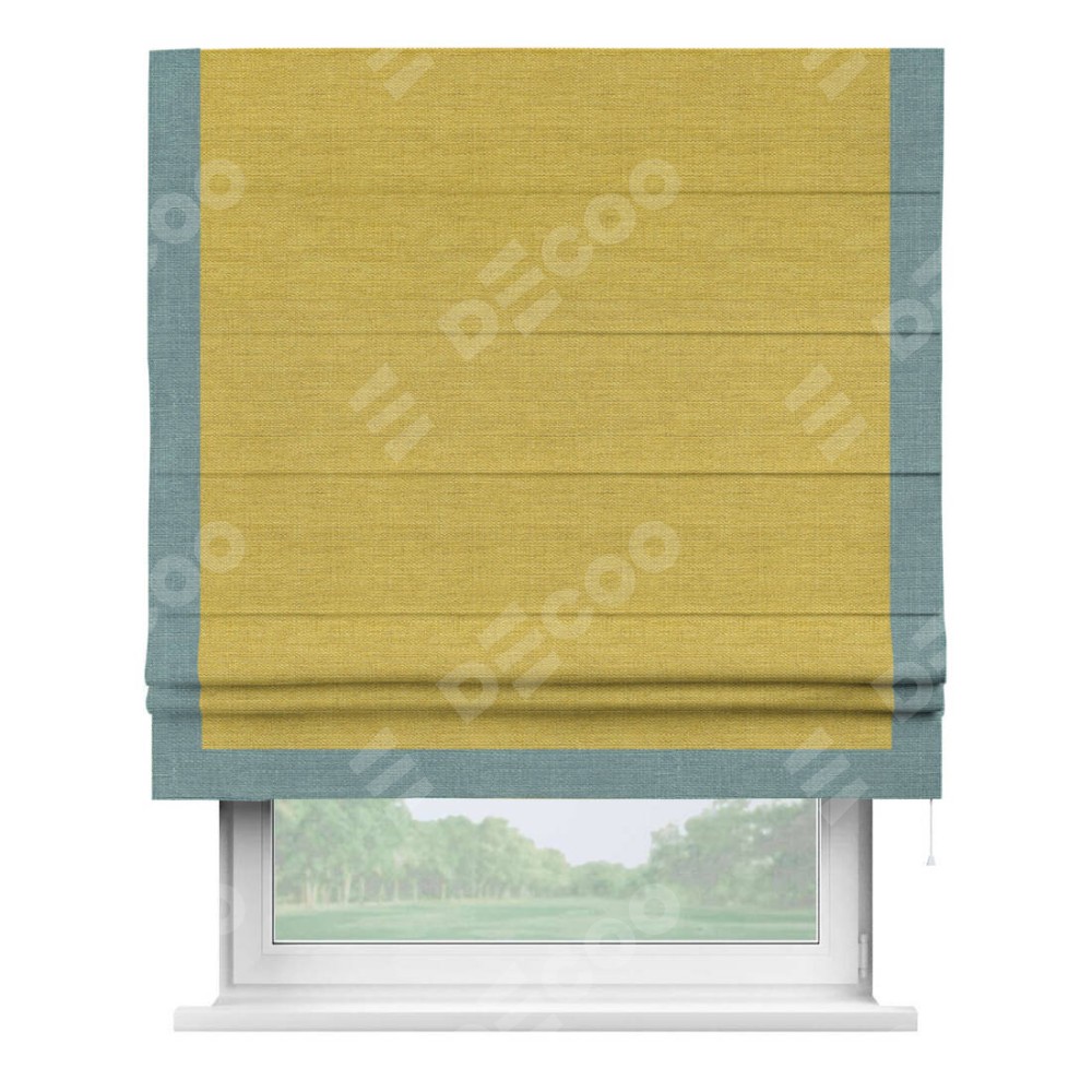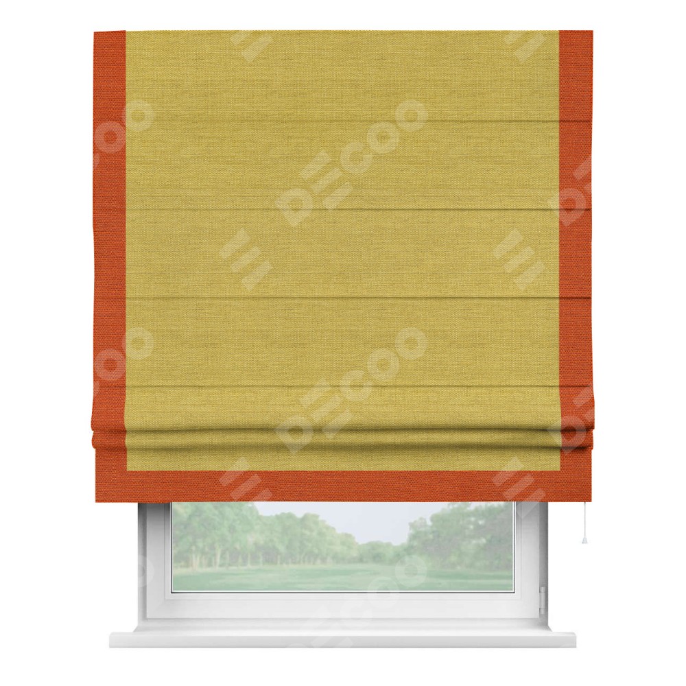 Римская штора производителя «Cortin», используется для проёма, пошита из ткани лён светло-салатовый, артикул 53438. Отделка шторы кантом «Виктория», ткань для канта используется из льна разной расцветки на выбор. Имеет универсальный механизм и подходит для монтажа: на потолок, на стену и в нишу.