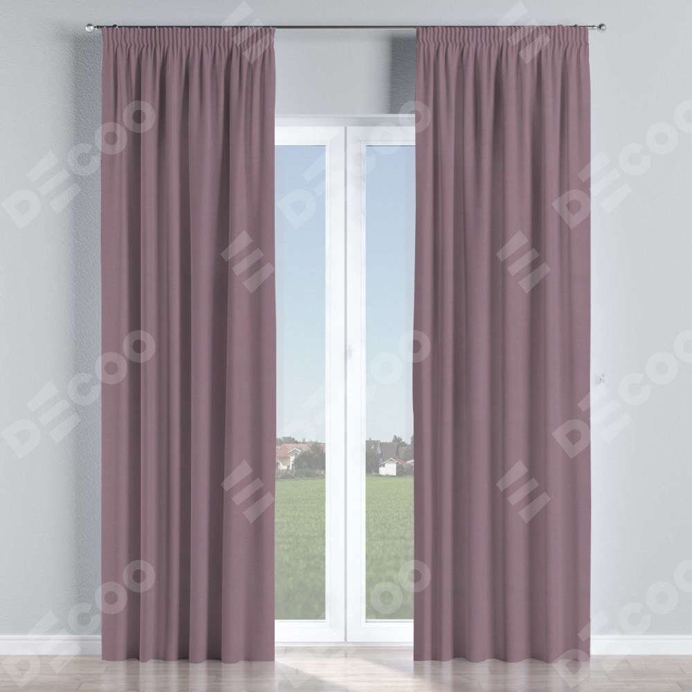 Комплект прямых штор, от производителя «Cortin», пошиты из ткани блэкаут однотонный брусника, артикул ткани 88302. С изнаночной стороны в верхней части штор пристрачивается шторная лента с декоративными складками «Карандаш». Для создания элегантных складок прямые шторы шьются по стандарту с коэффициентом 1:2 (на 100 см. ширины проёма 200 см. ширины ткани).