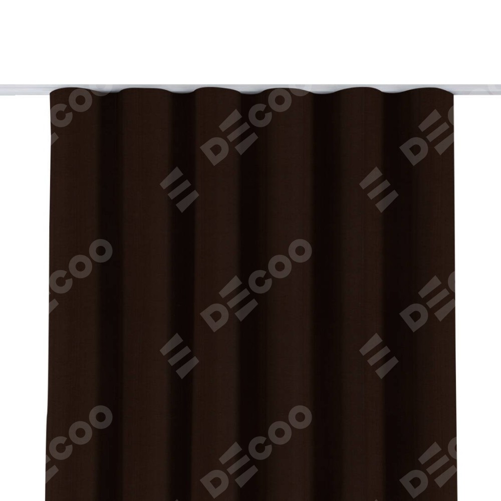Комплект прямых штор, от производителя «Cortin», пошиты из ткани блэкаут однотонный тёмно-коричневый, артикул ткани 88287. С изнаночной стороны в верхней части штор пристрачивается шторная лента с декоративными складками «Волна». Для создания элегантных складок прямые шторы шьются по стандарту с коэффициентом 1:2 (на 100 см. ширины проёма 200 см. ширины ткани).