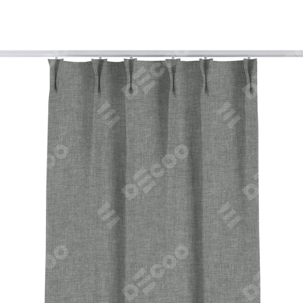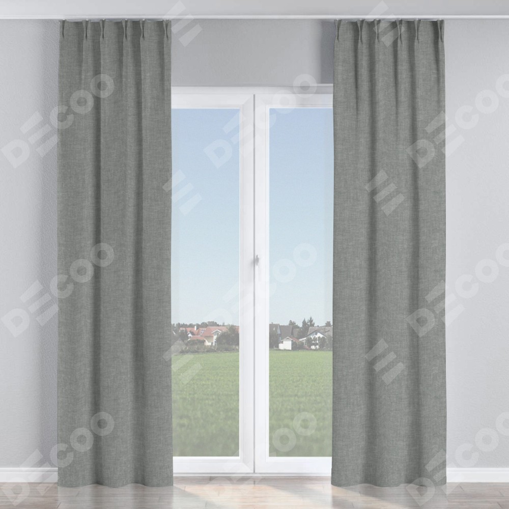 Комплект прямых штор, от производителя «Cortin», пошиты из ткани рогожка димаут тёмно-серый, артикул ткани 80418. С изнаночной стороны в верхней части штор пристрачивается шторная лента с декоративными складками «Кустик». Для создания элегантных складок прямые шторы шьются по стандарту с коэффициентом 1:2 (на 100 см. ширины проёма 200 см. ширины ткани).