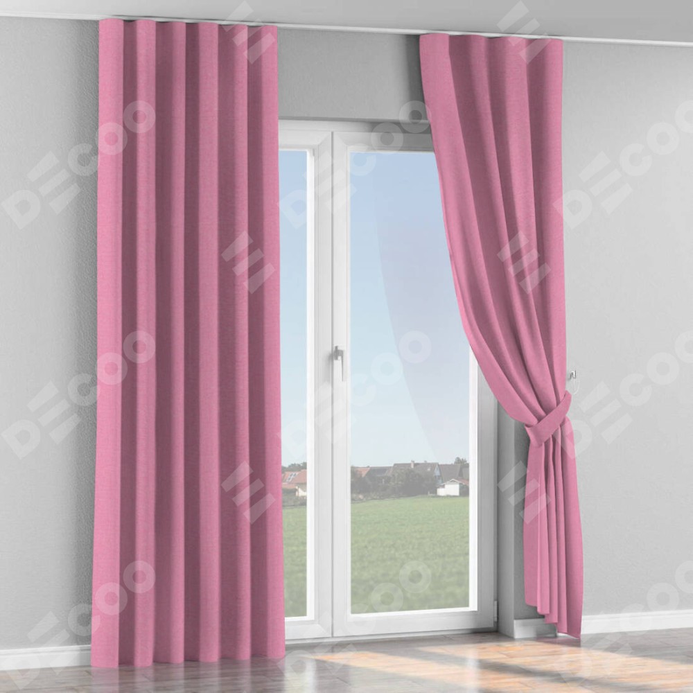 Комплект прямых штор, от производителя «Cortin», пошиты из ткани лён димаут розовый, артикул ткани 16257. С изнаночной стороны в верхней части штор пристрачивается шторная лента с декоративными складками «Волна». Для создания элегантных складок прямые шторы шьются по стандарту с коэффициентом 1:2 (на 100 см. ширины проёма 200 см. ширины ткани).
