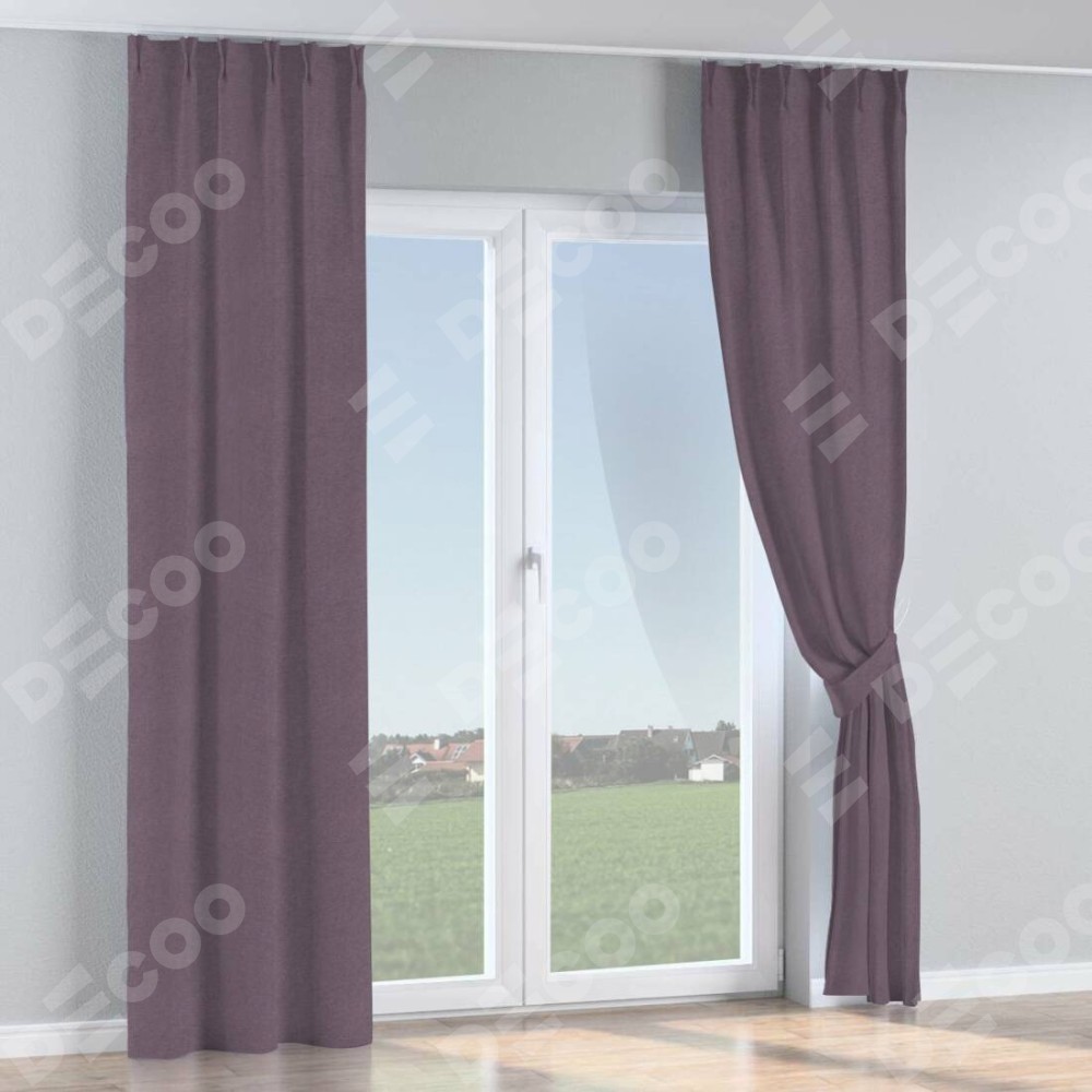 Комплект прямых штор, от производителя «Cortin», пошиты из ткани лён димаут светло-фиолетовый, артикул ткани 83034. С изнаночной стороны в верхней части штор пристрачивается шторная лента с декоративными складками «Кустик». Для создания элегантных складок прямые шторы шьются по стандарту с коэффициентом 1:2 (на 100 см. ширины проёма 200 см. ширины ткани).