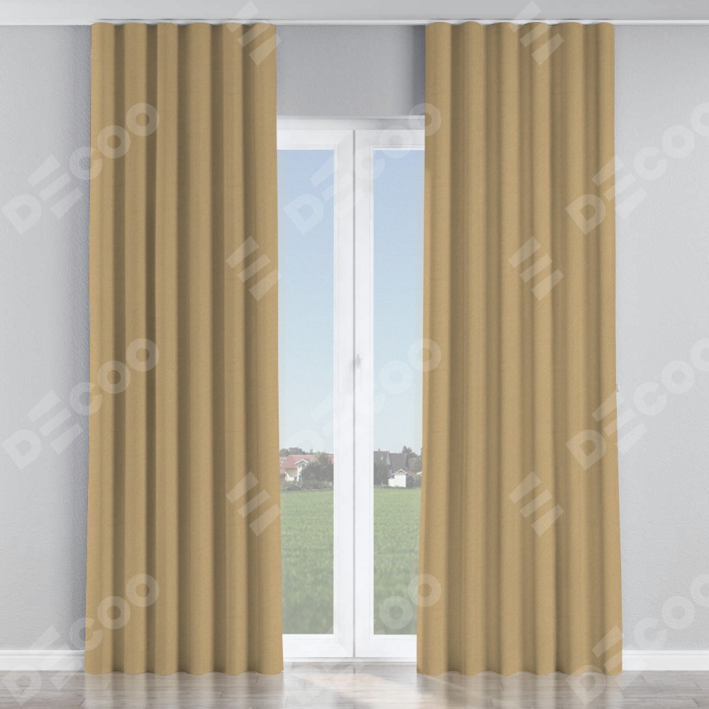Комплект прямых штор, от производителя «Cortin», пошиты из ткани лён димаут тёмно-бежевый, артикул ткани 83037. С изнаночной стороны в верхней части штор пристрачивается шторная лента с декоративными складками «Волна». Для создания элегантных складок прямые шторы шьются по стандарту с коэффициентом 1:2 (на 100 см. ширины проёма 200 см. ширины ткани).