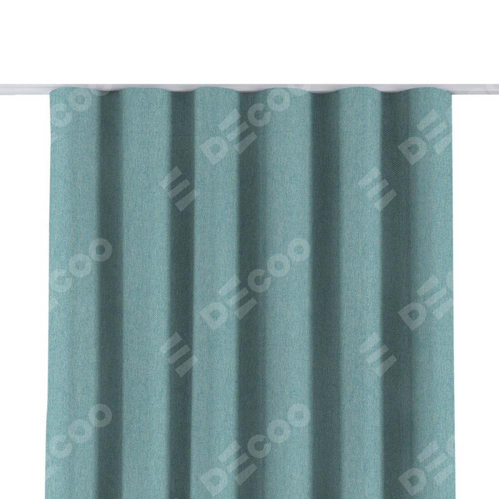 Комплект прямых штор, от производителя «Cortin», пошиты из ткани твид блэкаут небесно-голубой, артикул ткани 21578. С изнаночной стороны в верхней части штор пристрачивается шторная лента с декоративными складками «Волна». Для создания элегантных складок прямые шторы шьются по стандарту с коэффициентом 1:2 (на 100 см. ширины проёма 200 см. ширины ткани).