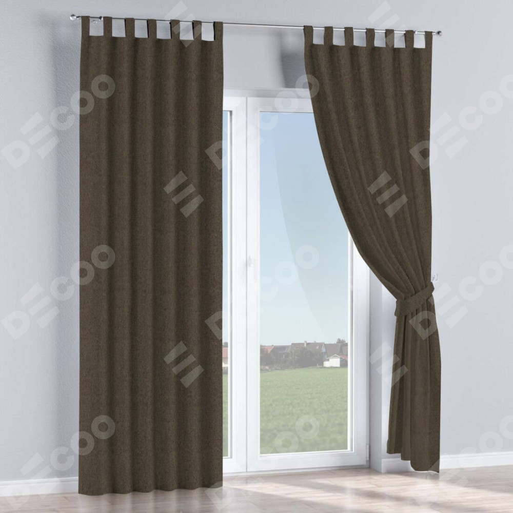 Комплект прямых штор, от производителя «Cortin», пошиты из ткани твид блэкаут тёмно-коричневый, артикул ткани 21584. Данная модель пошита на петлях, комплектуется на выбор круглым карнизом и подходит для монтажа на стену или потолок. Прямые шторы на петлях шьются по стандарту с коэффициентом 1/2 (на 100 см. ширины проёма 200 см. ширины ткани), отличительным преимуществом данной модели является простой способ монтажа. Достаточно повесить ее на трубу и штора готова!