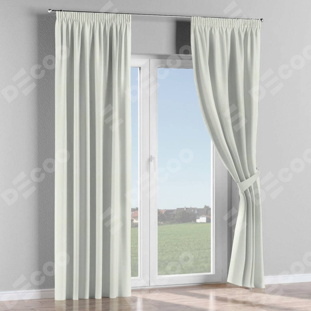 Комплект прямых штор, от производителя «Cortin», пошиты из ткани вельвет кремовый, артикул ткани 85524. С изнаночной стороны в верхней части штор пристрачивается шторная лента с декоративными складками «Карандаш». Для создания элегантных складок прямые шторы шьются по стандарту с коэффициентом 1:2 (на 100 см. ширины проёма 200 см. ширины ткани).
