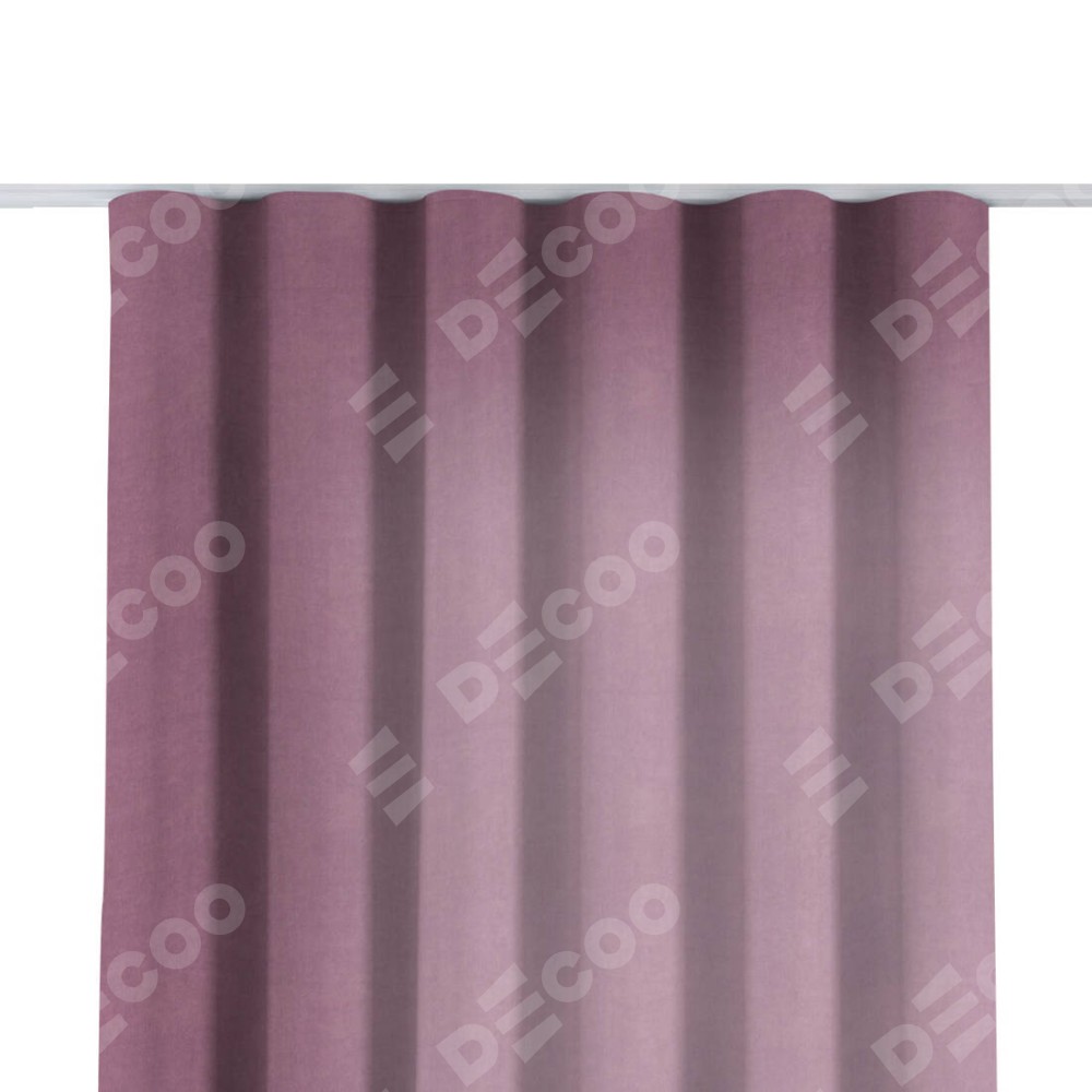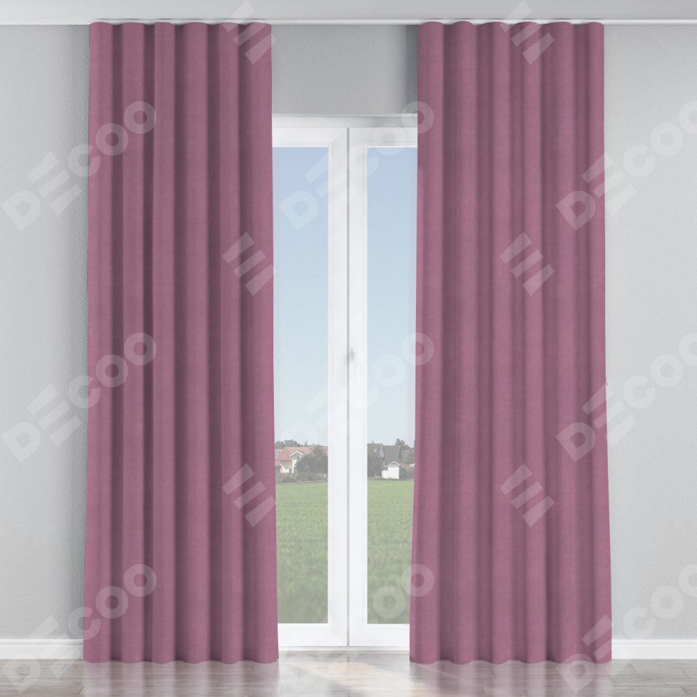 Комплект прямых штор, от производителя «Cortin», пошиты из ткани вельвет лиловый, артикул ткани 17752. С изнаночной стороны в верхней части штор пристрачивается шторная лента с декоративными складками «Волна». Для создания элегантных складок прямые шторы шьются по стандарту с коэффициентом 1:2 (на 100 см. ширины проёма 200 см. ширины ткани).