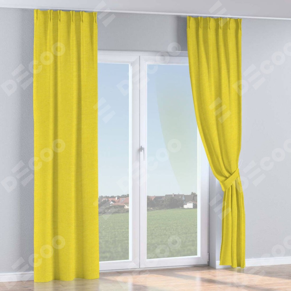 Комплект прямых штор, от производителя «Cortin», пошиты из ткани лён салатовый, артикул ткани 53437. С изнаночной стороны в верхней части штор пристрачивается шторная лента с декоративными складками «Кустик». Для создания элегантных складок прямые шторы шьются по стандарту с коэффициентом 1:2 (на 100 см. ширины проёма 200 см. ширины ткани).