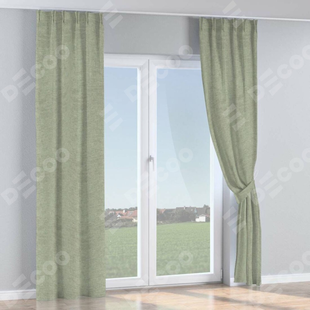 Комплект прямых штор, от производителя «Cortin», пошиты из ткани лён кашемир серый new, артикул ткани 21618. С изнаночной стороны в верхней части штор пристрачивается шторная лента с декоративными складками «Кустик». Для создания элегантных складок прямые шторы шьются по стандарту с коэффициентом 1:2 (на 100 см. ширины проёма 200 см. ширины ткани).