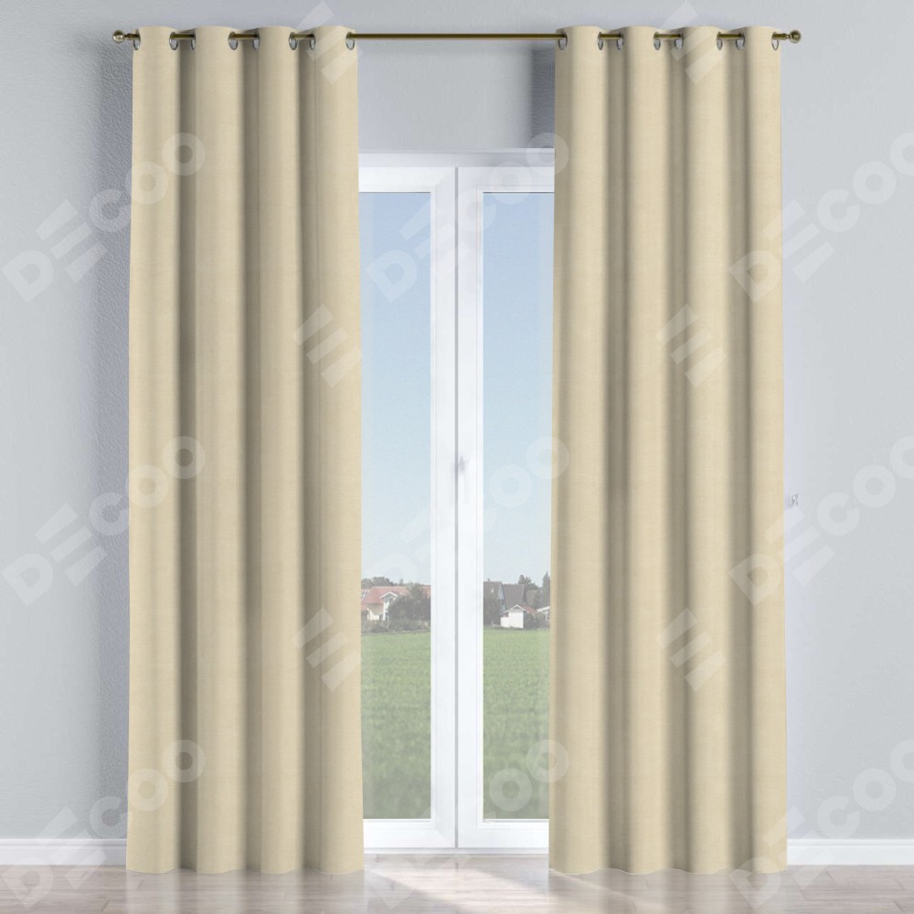 Комплект прямых штор, от производителя «Cortin», пошиты из ткани лён кашемир шампань, артикул ткани 17205. Данная модель пошита на люверсах, комплектуется на выбор круглым карнизом и подходит для монтажа на стену или потолок. Прямые шторы на люверсах шьются по стандарту с коэффициентом 1/2 (на 100 см. ширины проёма 200 см. ширины ткани), отличительным преимуществом данной модели является простой способ монтажа. Достаточно повесить ее на трубу и штора готова!