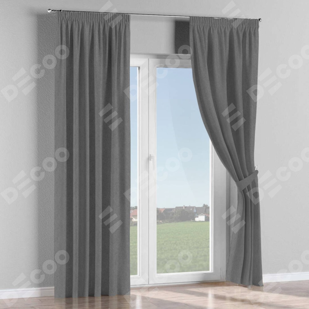 Комплект прямых штор, от производителя «Cortin», пошиты из ткани софт однотонный серый, артикул ткани 70605. С изнаночной стороны в верхней части штор пристрачивается шторная лента с декоративными складками «Карандаш». Для создания элегантных складок прямые шторы шьются по стандарту с коэффициентом 1:2 (на 100 см. ширины проёма 200 см. ширины ткани).