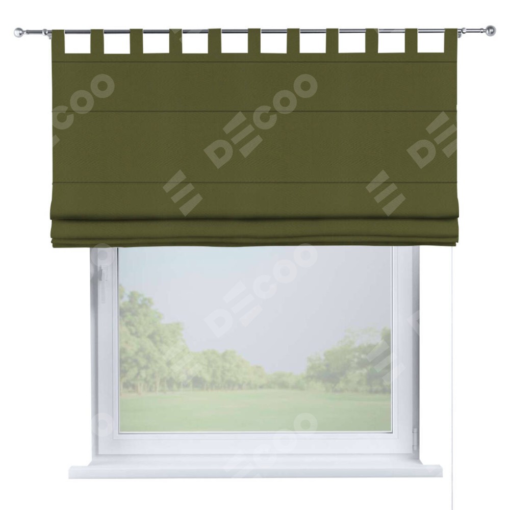 Римская штора производителя «Cortin», используется для проёма, пошита из ткани блэкаут однотонный зелёный, артикул ткани 81859. Данная модель пошита на петлях, комплектуется на выбор круглым карнизом и подходит для монтажа на стену. Римская штора на петлях имеет простую систему регулировки высоты, отличительным преимуществом данной модели является простой способ монтажа. Достаточно повесить ее на трубу и штора готова!