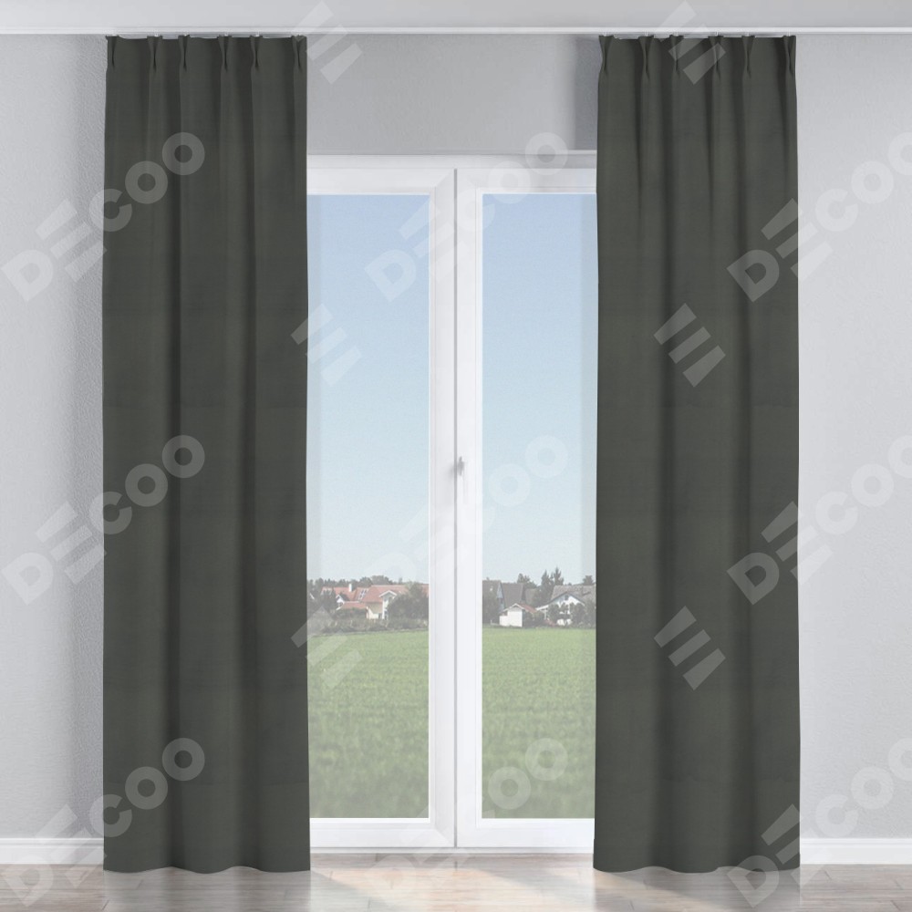Комплект прямых штор, от производителя «Cortin», пошиты из ткани бархат серый, артикул ткани 5024. С изнаночной стороны в верхней части штор пристрачивается шторная лента с декоративными складками «Кустик». Для создания элегантных складок прямые шторы шьются по стандарту с коэффициентом 1:2 (на 100 см. ширины проёма 200 см. ширины ткани).