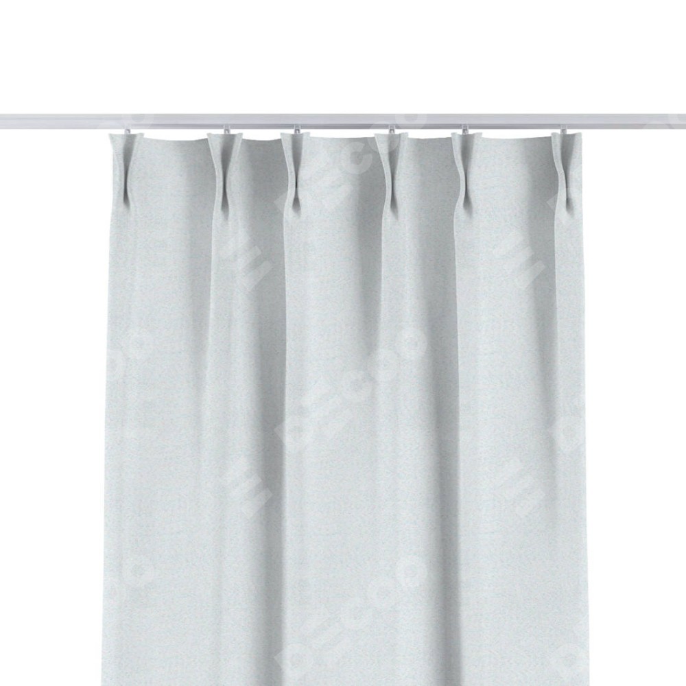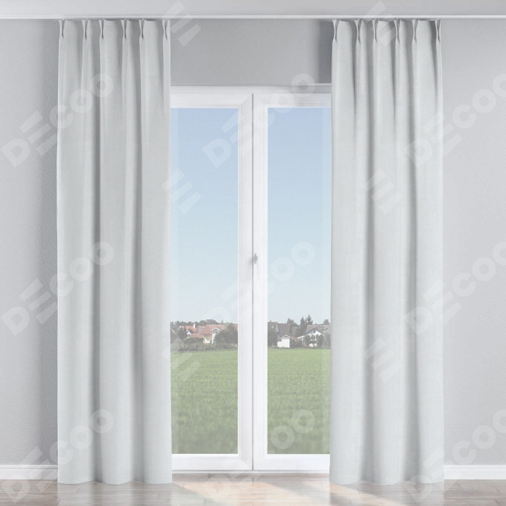Комплект прямых штор, от производителя «Cortin», пошиты из ткани блэкаут однотонный дымчато-белый, артикул ткани 101. С изнаночной стороны в верхней части штор пристрачивается шторная лента с декоративными складками «Кустик». Для создания элегантных складок прямые шторы шьются по стандарту с коэффициентом 1:2 (на 100 см. ширины проёма 200 см. ширины ткани).