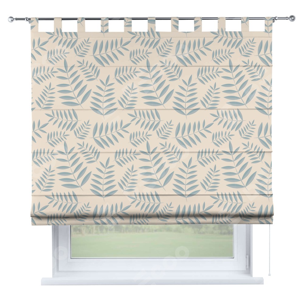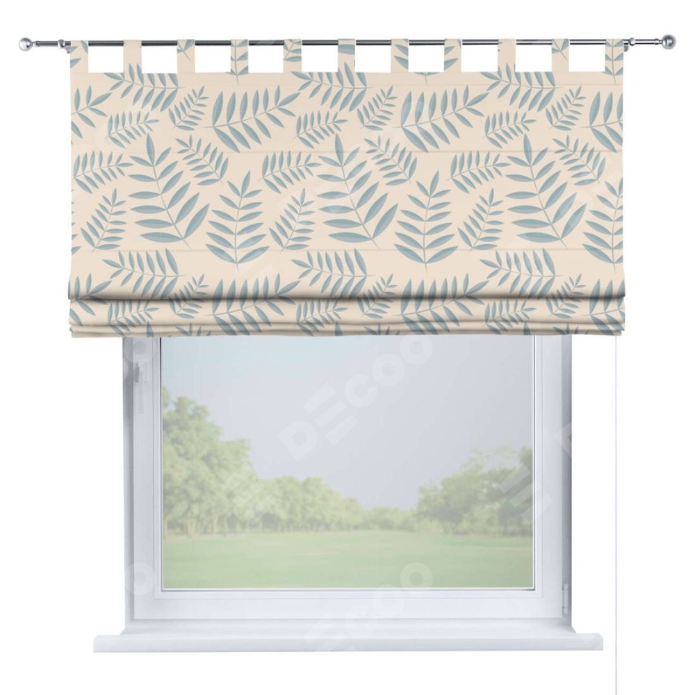 Римская штора производителя «Cortin», используется для проёма, пошита из ткани блэкаут с нанесением сублимационной печати «Веточка с листочками». Данная модель пошита на петлях, комплектуется на выбор круглым карнизом и подходит для монтажа на стену. Римская штора на петлях имеет простую систему регулировки высоты, отличительным преимуществом данной модели является простой способ монтажа. Достаточно повесить ее на трубу и штора готова!