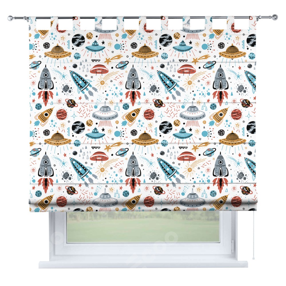 Римская штора производителя «Cortin», используется для проёма, пошита из ткани блэкаут с нанесением сублимационной печати «Космическое приключение». Данная модель пошита на петлях, комплектуется на выбор круглым карнизом и подходит для монтажа на стену. Римская штора на петлях имеет простую систему регулировки высоты, отличительным преимуществом данной модели является простой способ монтажа. Достаточно повесить ее на трубу и штора готова!