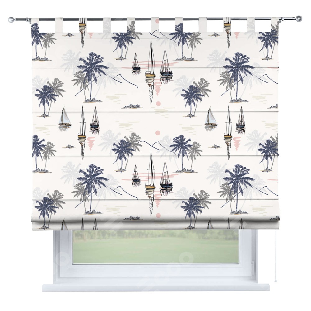 Римская штора производителя «Cortin», используется для проёма, пошита из ткани блэкаут с нанесением сублимационной печати «Морское путешествие». Данная модель пошита на петлях, комплектуется на выбор круглым карнизом и подходит для монтажа на стену. Римская штора на петлях имеет простую систему регулировки высоты, отличительным преимуществом данной модели является простой способ монтажа. Достаточно повесить ее на трубу и штора готова!