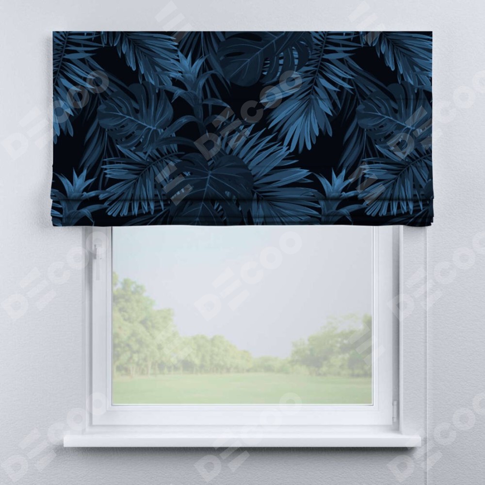 Римская штора производителя «Cortin», используется для проёма, пошита из ткани блэкаут с нанесением сублимационной печати «Ночные джунгли». Имеет универсальный механизм и подходит для монтажа: на потолок, на стену и в нишу.