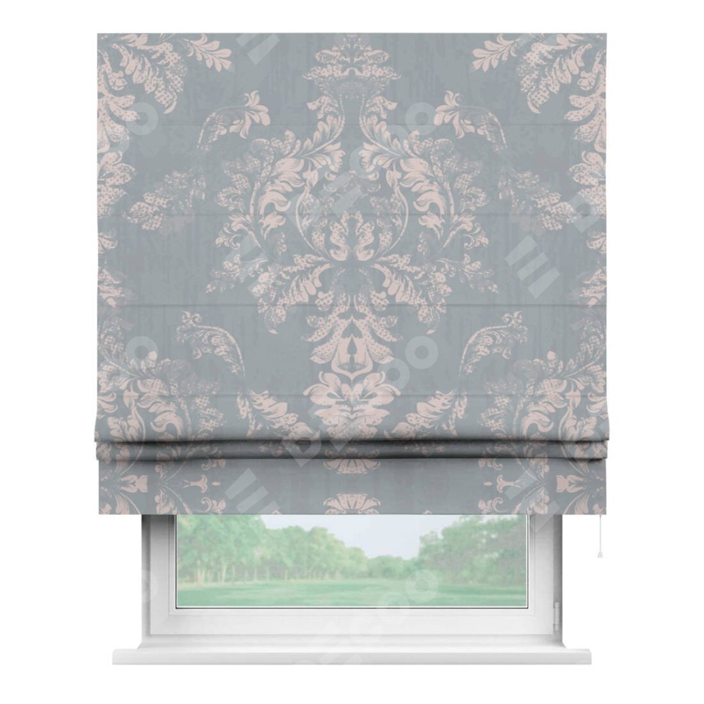 Римская штора производителя «Cortin», используется для проёма, пошита из ткани блэкаут с нанесением сублимационной печати «Винтажный узор серый». Имеет универсальный механизм и подходит для монтажа: на потолок, на стену и в нишу.