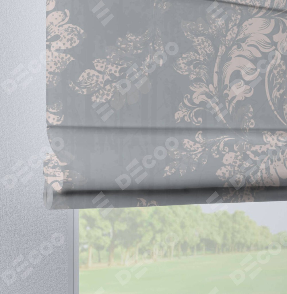 Римская штора производителя «Cortin», используется для проёма, пошита из ткани блэкаут с нанесением сублимационной печати «Винтажный узор серый». Данная модель пошита на петлях, комплектуется на выбор круглым карнизом и подходит для монтажа на стену. Римская штора на петлях имеет простую систему регулировки высоты, отличительным преимуществом данной модели является простой способ монтажа. Достаточно повесить ее на трубу и штора готова!