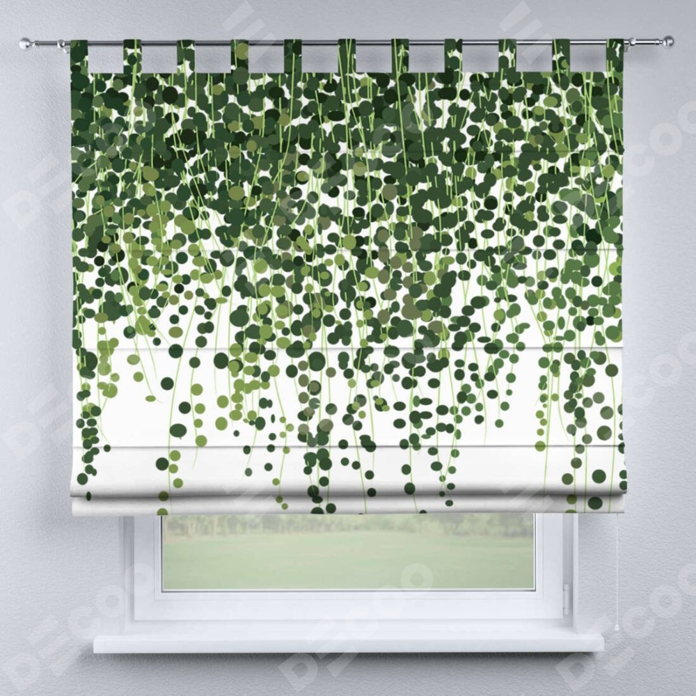 Римская штора производителя «Cortin», используется для проёма, пошита из ткани блэкаут с нанесением сублимационной печати «Зелёный занавес». Данная модель пошита на петлях, комплектуется на выбор круглым карнизом и подходит для монтажа на стену. Римская штора на петлях имеет простую систему регулировки высоты, отличительным преимуществом данной модели является простой способ монтажа. Достаточно повесить ее на трубу и штора готова!