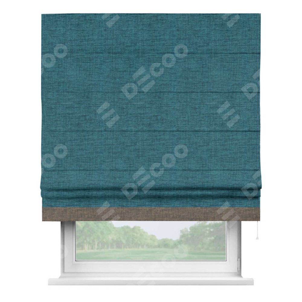 Римская штора производителя «Cortin», используется для проёма, пошита из ткани рогожка димаут синий, артикул 80422. Отделка шторы кантом «Джестер», ткань для канта используется из рогожки димаут разной расцветки на выбор. Имеет универсальный механизм и подходит для монтажа: на потолок, на стену и в нишу.