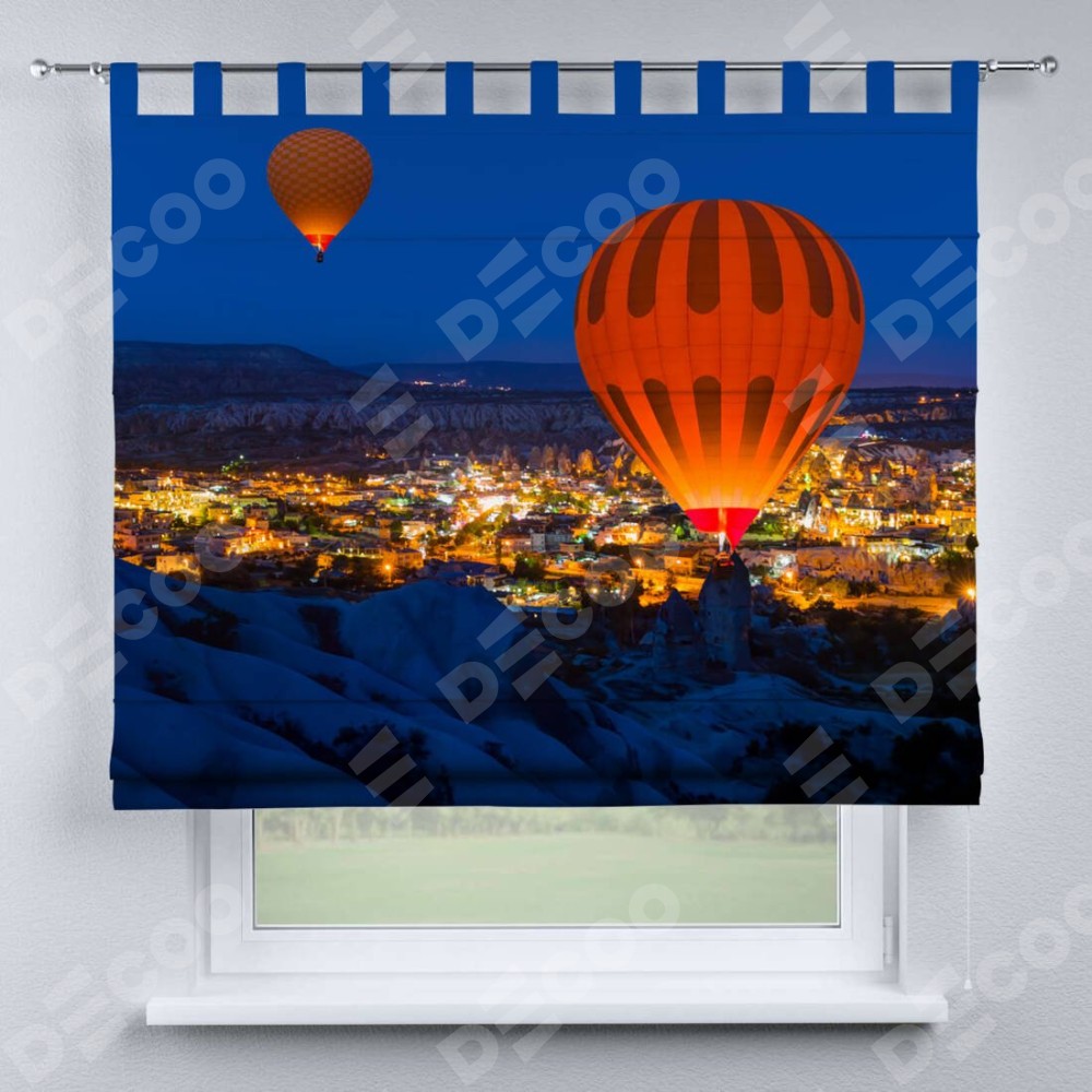 Римская штора производителя «Cortin», используется для проёма, пошита из ткани блэкаут с нанесением сублимационной печати «Воздушные шары в небе». Данная модель пошита на петлях, комплектуется на выбор круглым карнизом и подходит для монтажа на стену. Римская штора на петлях имеет простую систему регулировки высоты, отличительным преимуществом данной модели является простой способ монтажа. Достаточно повесить ее на трубу и штора готова!