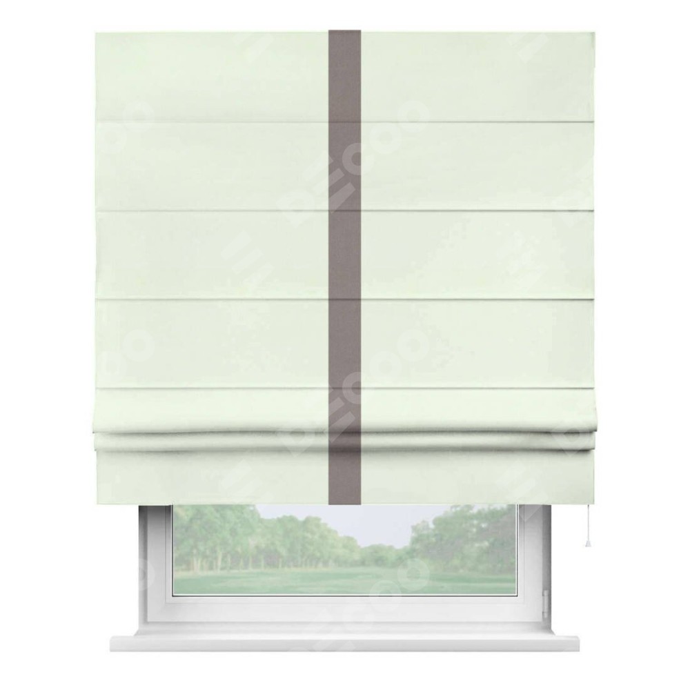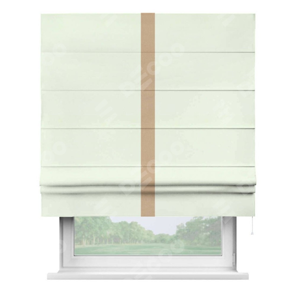 Римская штора производителя «Cortin», используется для проёма, пошита из ткани вельвет кремовый, артикул ткани 85524. Отделка шторы кантом «Хайвей», ткань для канта используется из вельвета разной расцветки на выбор. Имеет универсальный механизм и подходит для монтажа: на потолок, на стену и в нишу.