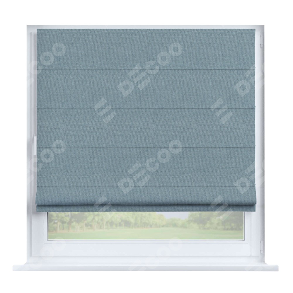 Римская штора производителя «Cortin», устанавливается на створку окна, пошита из ткани блэкаут тиснение с блеском синий, артикул 34632. Изнаночная сторона материала черного цвета, что обеспечивает необходимую светонепроницаемость. Штора шьётся по индивидуальным размерам, для данного типа римской шторы возможная ширина от 35 до 150 см., высота до 250 см.
