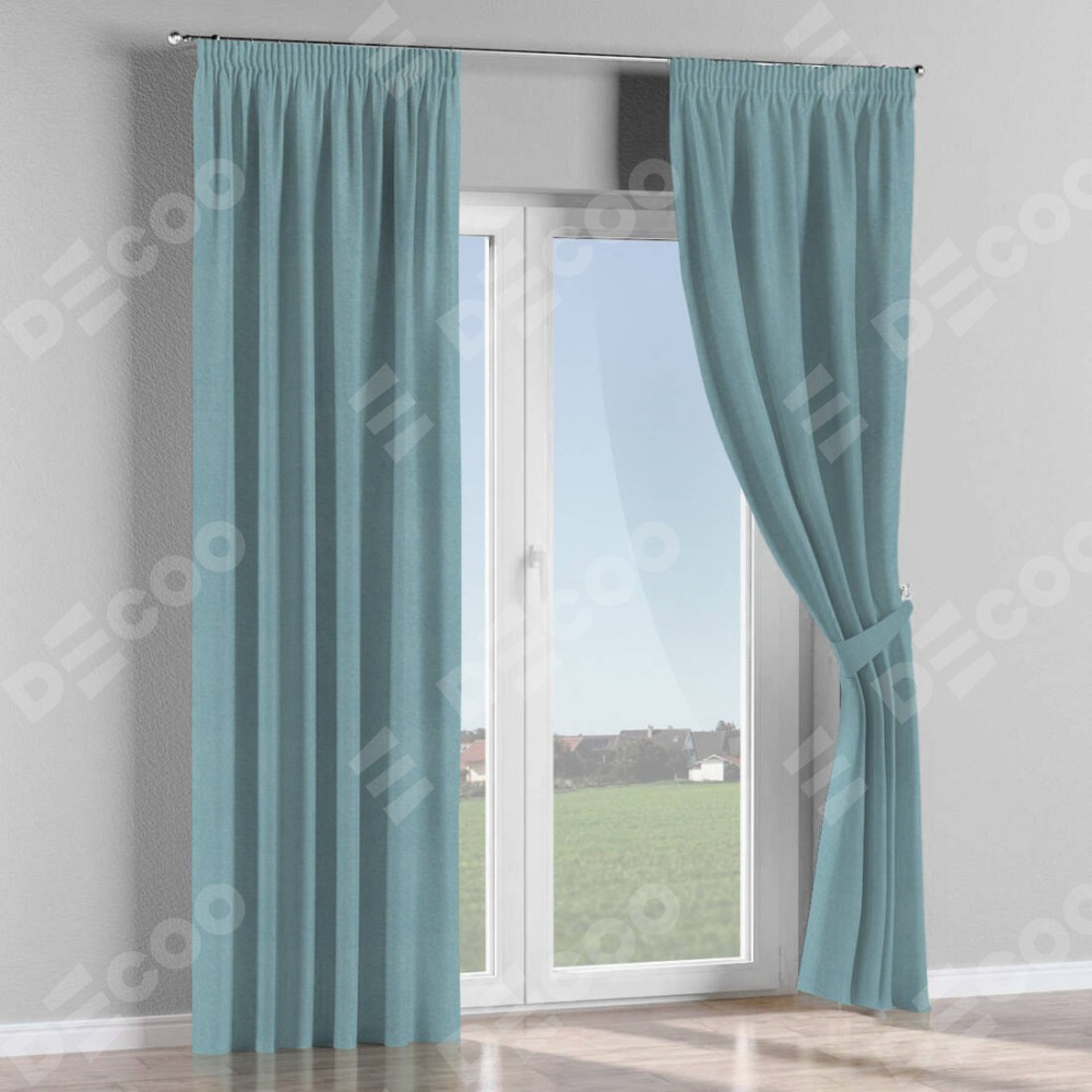 Комплект прямых штор, от производителя «Cortin», пошиты из ткани блэкаут с блеском синий, артикул ткани 34625. С изнаночной стороны в верхней части штор пристрачивается шторная лента с декоративными складками «Карандаш». Обратная сторона основного материала черного цвета, что обеспечивает необходимую светонепроницаемость. Для создания элегантных складок прямые шторы шьются по стандарту с коэффициентом 1:2 (на 100 см. ширины проёма 200 см. ширины ткани).
