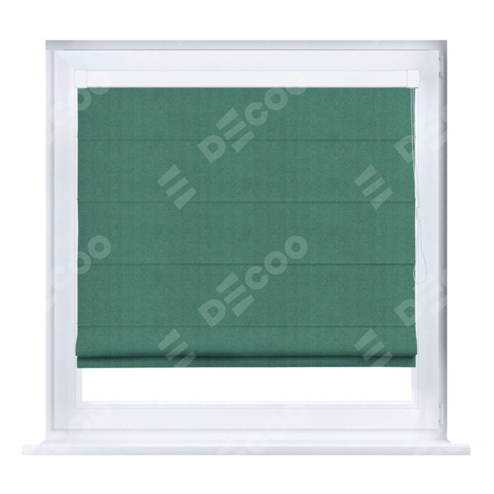 Римская штора производителя «Cortin», устанавливается на створку окна, пошита из ткани блэкаут тиснение с блеском изумрудный, артикул 34628. Изнаночная сторона материала черного цвета, что обеспечивает необходимую светонепроницаемость. Штора шьётся по индивидуальным размерам, для данного типа римской шторы возможная ширина от 35 до 150 см., высота до 250 см.