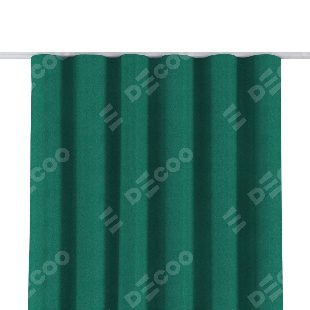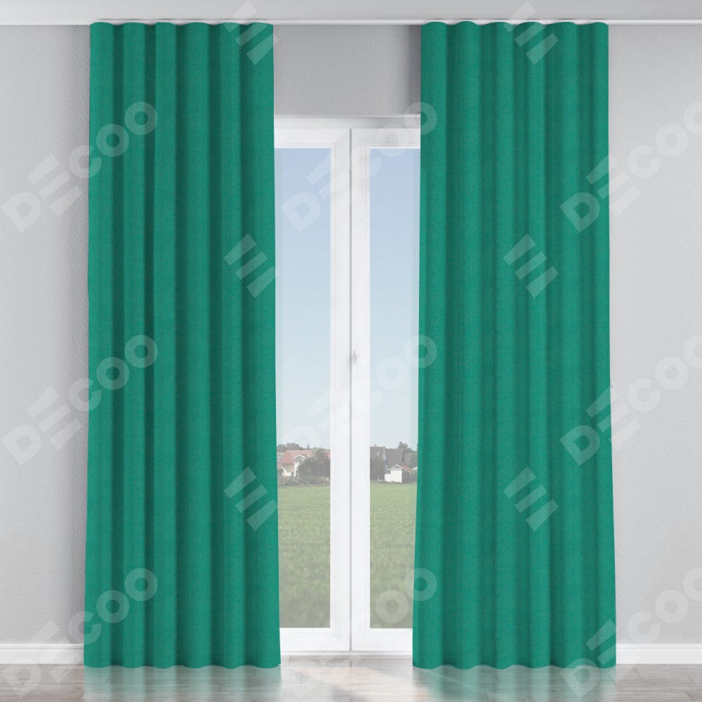 Комплект прямых штор, от производителя «Cortin», пошиты из ткани блэкаут с блеском изумрудный, артикул ткани 34628. С изнаночной стороны в верхней части штор пристрачивается шторная лента с декоративными складками «Волна». Обратная сторона основного материала черного цвета, что обеспечивает необходимую светонепроницаемость. Для создания элегантных складок прямые шторы шьются по стандарту с коэффициентом 1:2 (на 100 см. ширины проёма 200 см. ширины ткани).