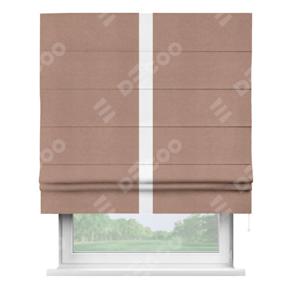 Римская штора производителя «Cortin», используется для проёма, пошита из ткани вельвет брусничный джем, артикул ткани 17750. Отделка шторы кантом «Хайвей», ткань для канта используется из вельвета разной расцветки на выбор. Имеет универсальный механизм и подходит для монтажа: на потолок, на стену и в нишу.