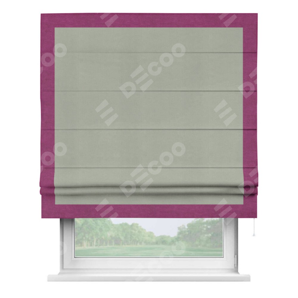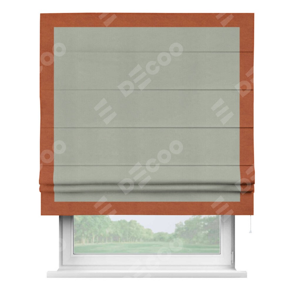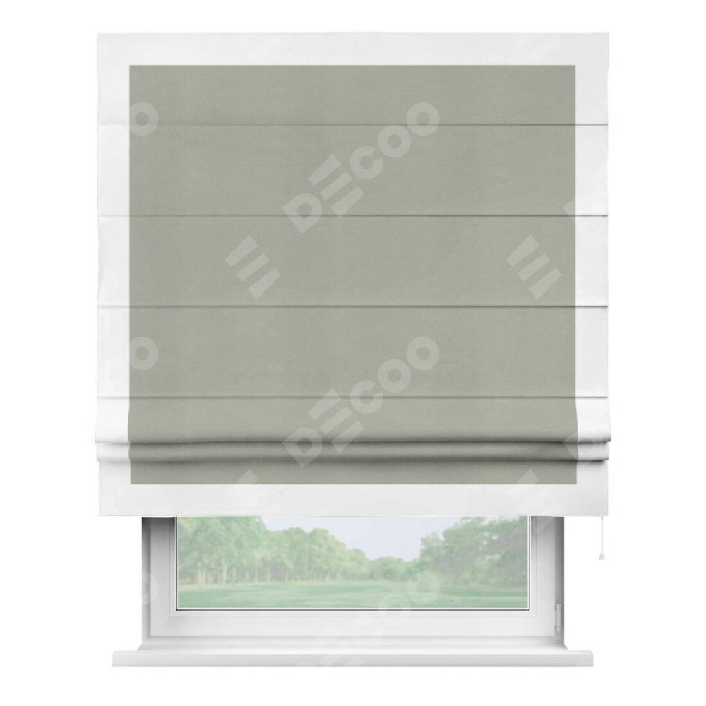 Римская штора производителя «Cortin», используется для проёма, пошита из ткани вельвет cветло-серый, артикул ткани 30980. Отделка шторы кантом «Чесс», ткань для канта используется из вельвета разной расцветки на выбор. Имеет универсальный механизм и подходит для монтажа: на потолок, на стену и в нишу.