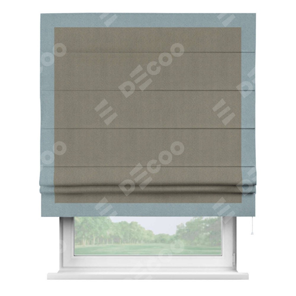 Римская штора производителя «Cortin», используется для проёма, пошита из ткани блэкаут с блеском графитовый, артикул 34648. Отделка шторы кантом «Чесс», ткань для канта используется из блэкаута с блеском разной расцветки на выбор. Изнаночная сторона материала черного цвета, что обеспечивает необходимую светонепроницаемость. Имеет универсальный механизм и подходит для монтажа: на потолок, на стену и в нишу.