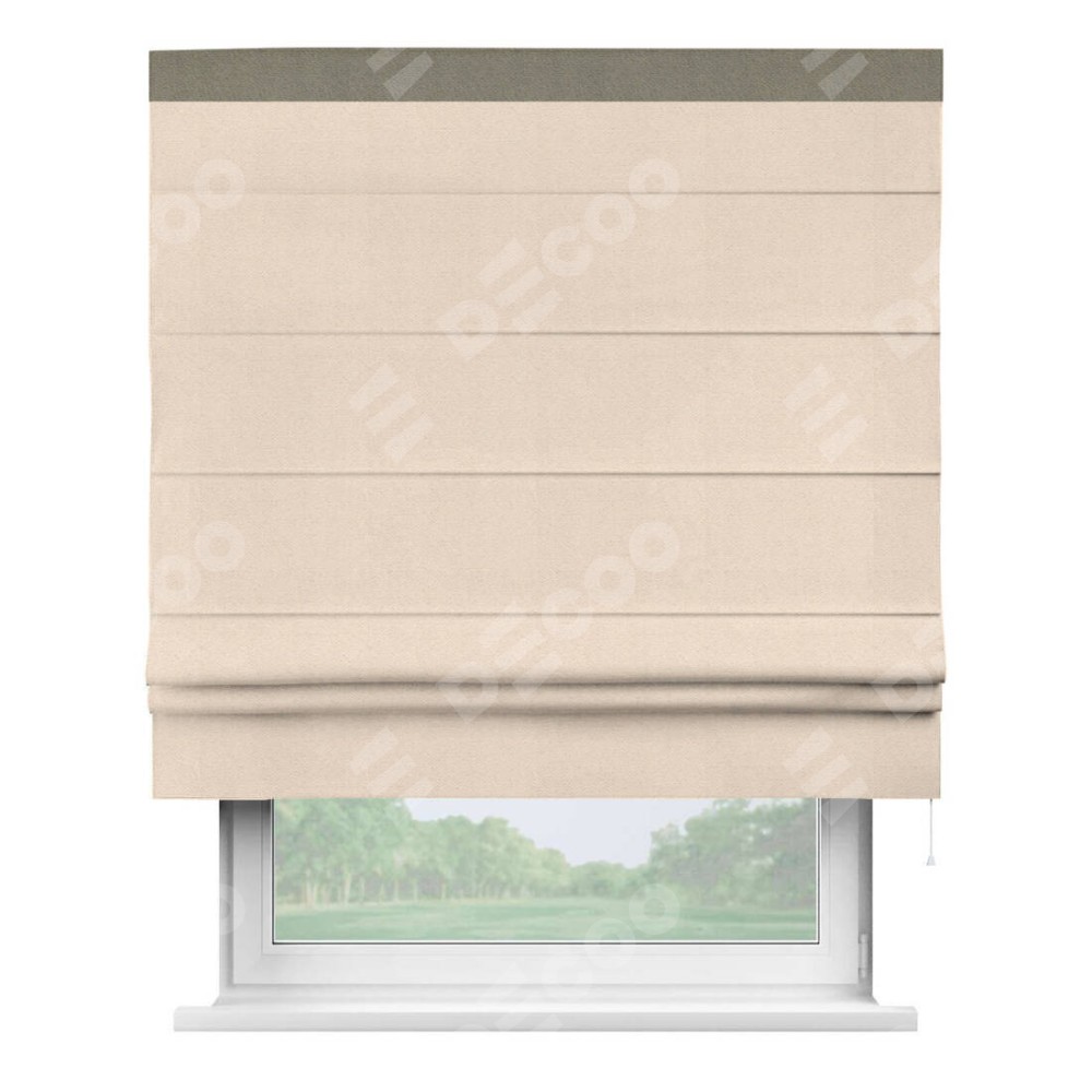Римская штора производителя «Cortin», используется для проёма, пошита из ткани блэкаут с блеском розовая пудра, артикул 34632. Отделка шторы кантом «Кинг», ткань для канта используется из блэкаута с блеском разной расцветки на выбор. Изнаночная сторона материала черного цвета, что обеспечивает необходимую светонепроницаемость. Имеет универсальный механизм и подходит для монтажа: на потолок, на стену и в нишу.