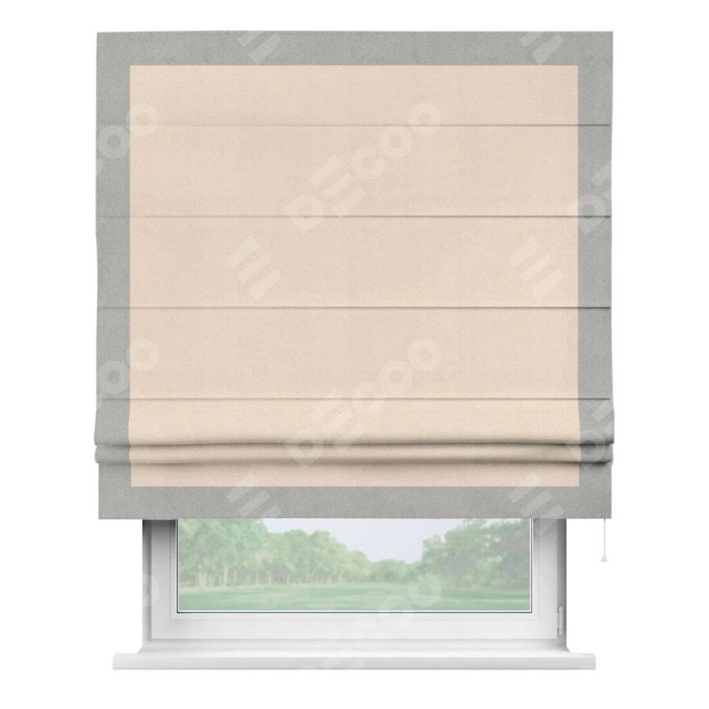 Римская штора производителя «Cortin», используется для проёма, пошита из ткани блэкаут с блеском розовая пудра, артикул 34632. Отделка шторы кантом «Чесс», ткань для канта используется из блэкаута с блеском разной расцветки на выбор. Изнаночная сторона материала черного цвета, что обеспечивает необходимую светонепроницаемость. Имеет универсальный механизм и подходит для монтажа: на потолок, на стену и в нишу.