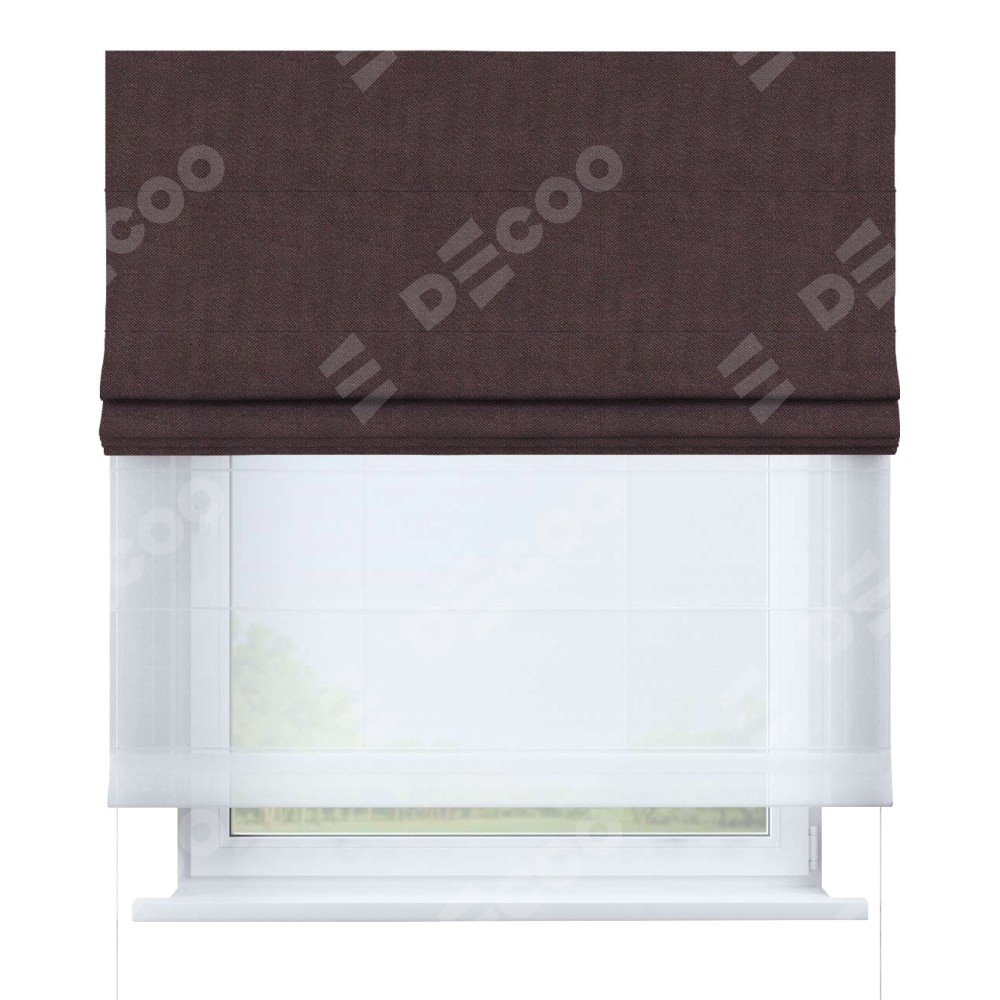 Римская штора день-ночь производителя «Cortin», используется для проёма, пошита из двух полотен, с лицевой стороны cotton блэкаут лиловый артикул 35316, вторая ткань тюль (по стандарту комплектуется тюль белого цвета артикул V-01). Имеет универсальный механизм и подходит для монтажа: на потолок, на стену и в нишу.