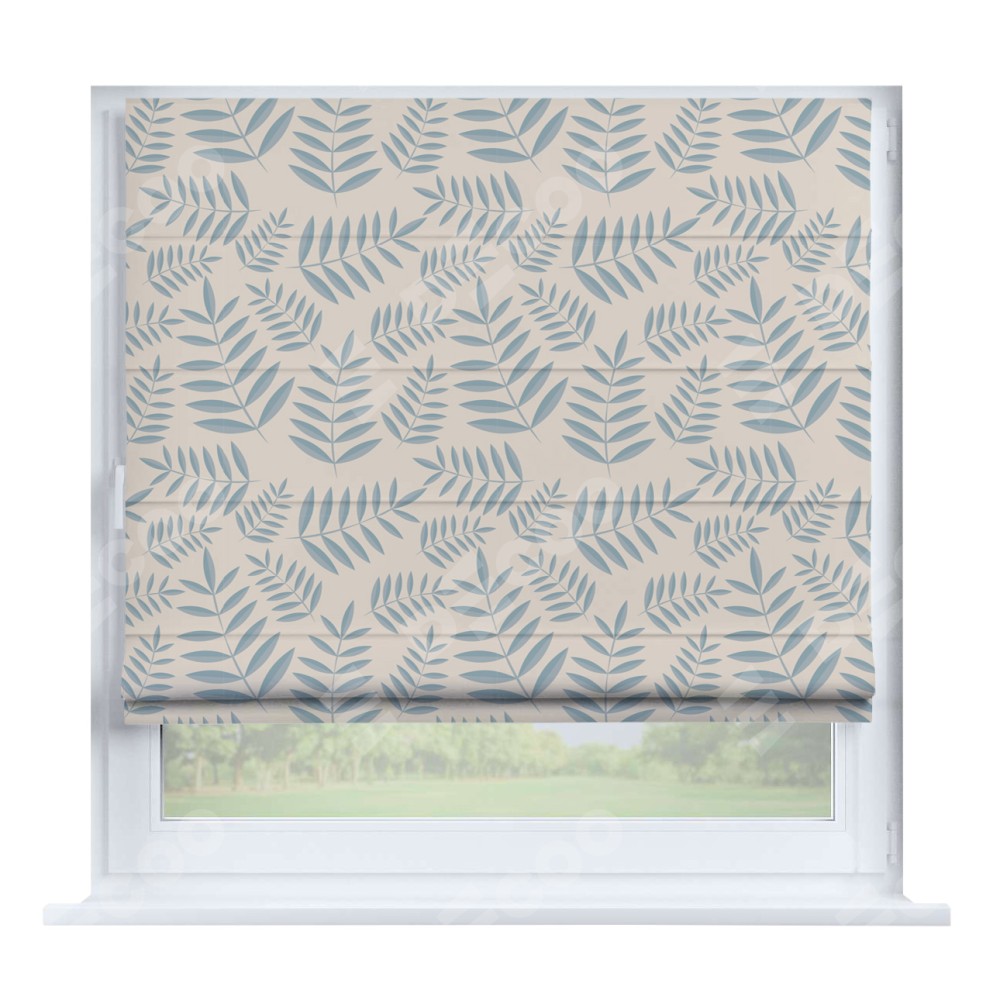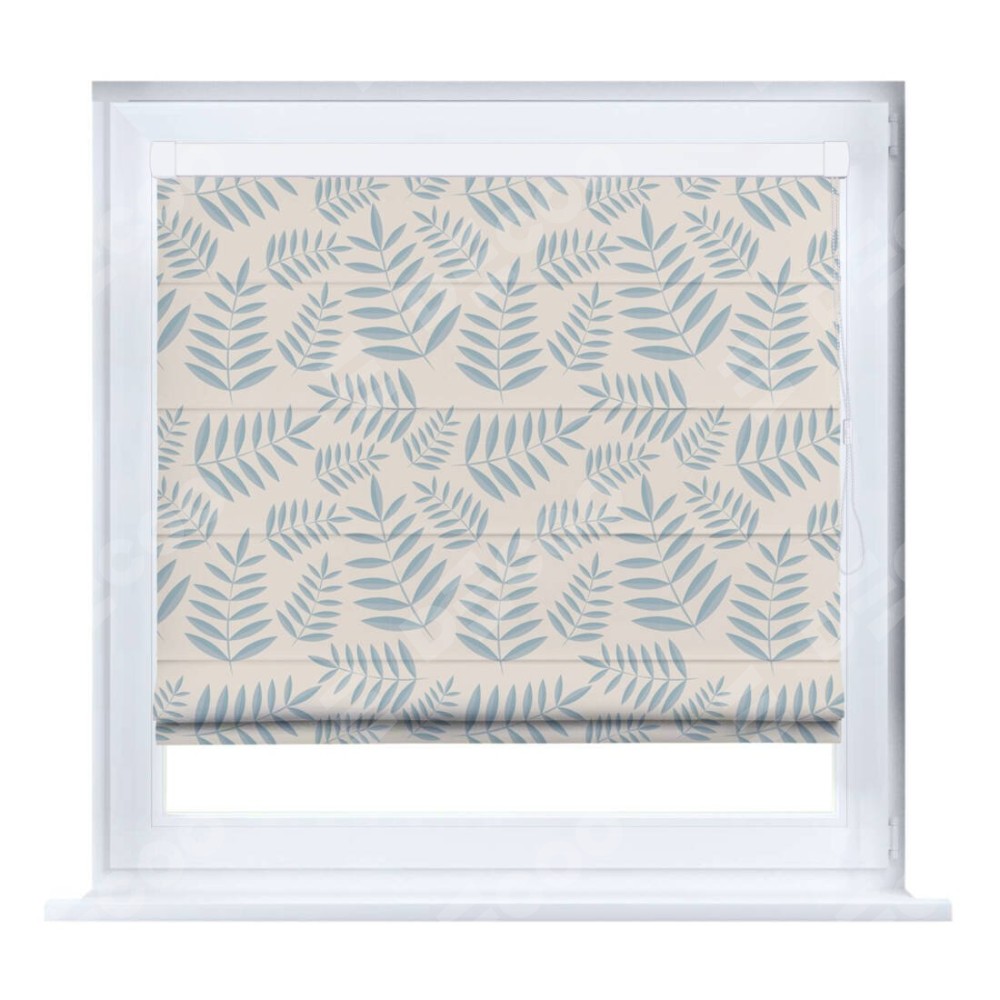 Римская штора производителя «Cortin», устанавливается на створку окна, пошита из ткани блэкаут с нанесением сублимационной печати «Веточка с листочками». Штора шьётся по индивидуальным размерам, для данного типа римской шторы возможная ширина от 35 до 150 см., высота до 250 см.