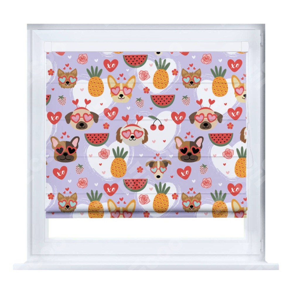 Римская штора производителя «Cortin», устанавливается на створку окна, пошита из ткани блэкаут с нанесением сублимационной печати «Забавные собачки». Штора шьётся по индивидуальным размерам, для данного типа римской шторы возможная ширина от 35 до 150 см., высота до 250 см.