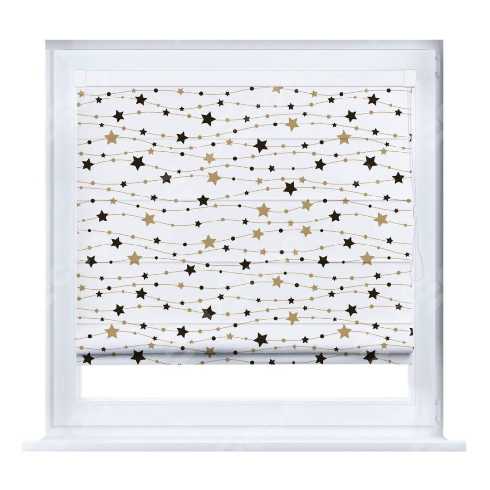 Римская штора производителя «Cortin», устанавливается на створку окна, пошита из ткани блэкаут с нанесением сублимационной печати «Звёздная нить». Штора шьётся по индивидуальным размерам, для данного типа римской шторы возможная ширина от 35 до 150 см., высота до 250 см.