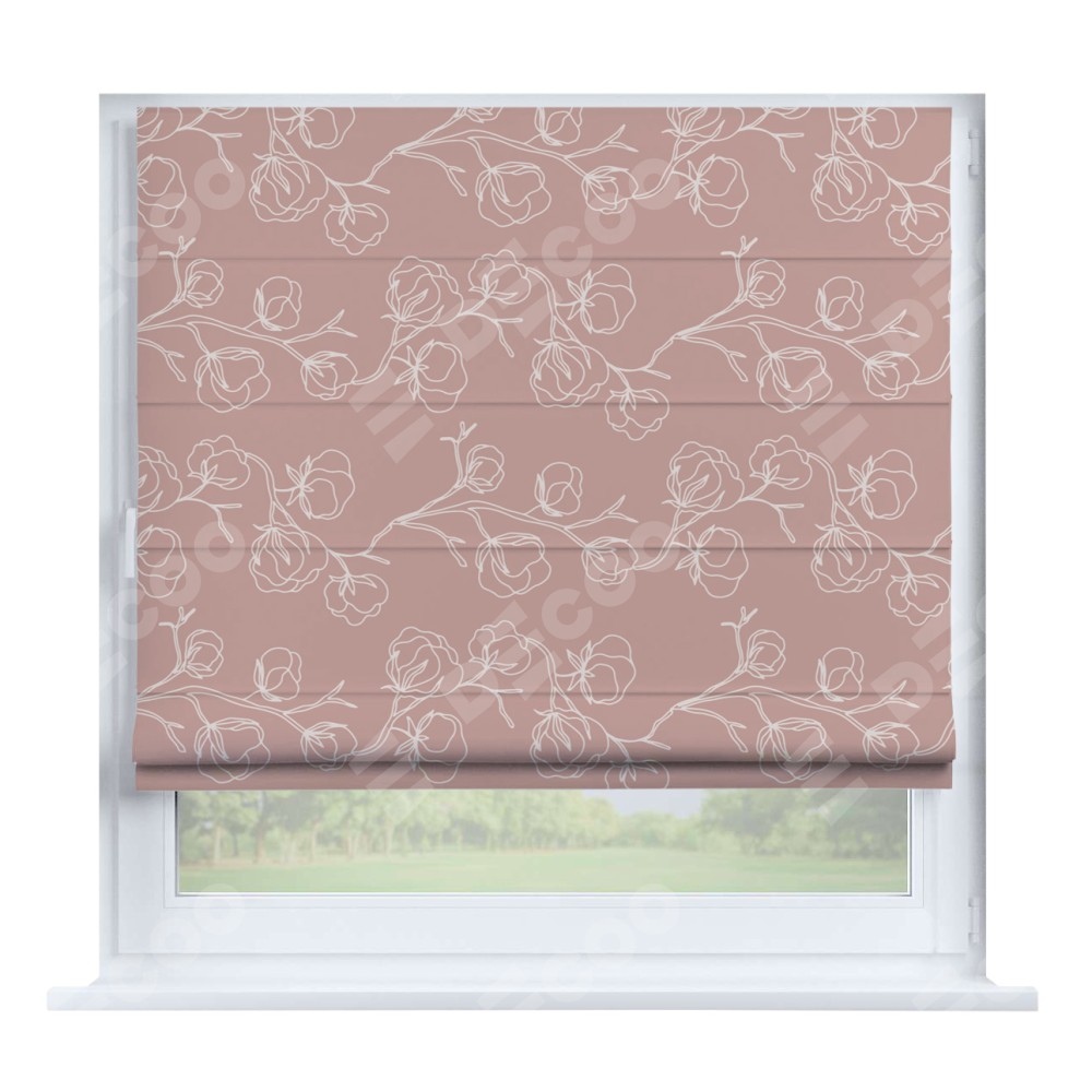 Римская штора производителя «Cortin», устанавливается на створку окна, пошита из ткани блэкаут с нанесением сублимационной печати «Нежные цветы». Штора шьётся по индивидуальным размерам, для данного типа римской шторы возможная ширина от 35 до 150 см., высота до 250 см.