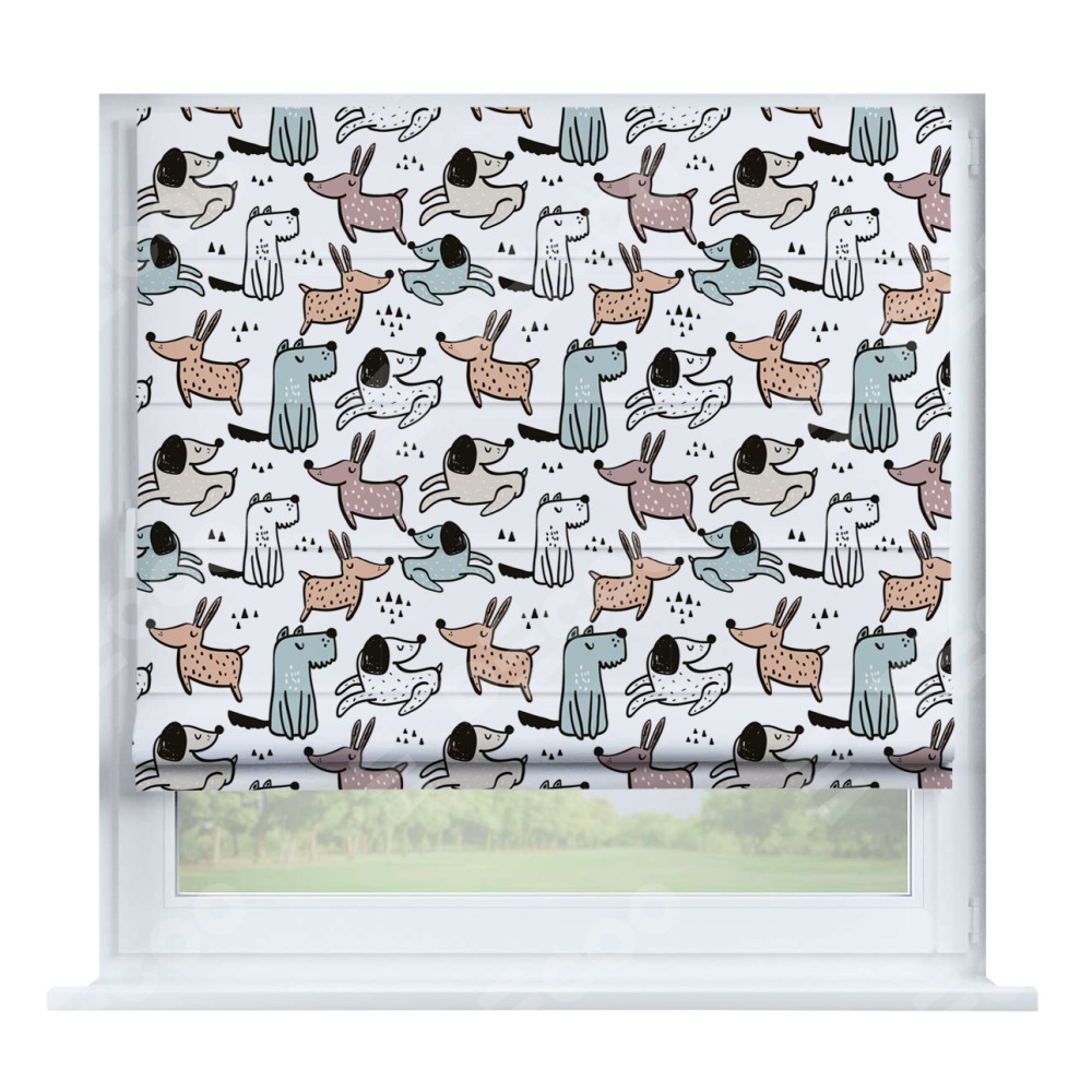 Римская штора производителя «Cortin», устанавливается на створку окна, пошита из ткани блэкаут с нанесением сублимационной печати «Очаровательные щеночки». Штора шьётся по индивидуальным размерам, для данного типа римской шторы возможная ширина от 35 до 150 см., высота до 250 см.