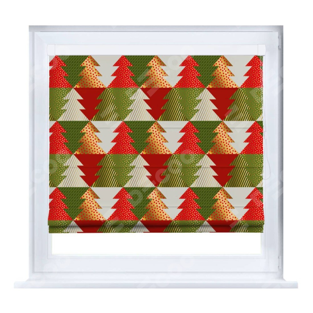 Римская штора производителя «Cortin», устанавливается на створку окна, пошита из ткани блэкаут с нанесением сублимационной печати «Новогоднее украшение». Штора шьётся по индивидуальным размерам, для данного типа римской шторы возможная ширина от 35 до 150 см., высота до 250 см.