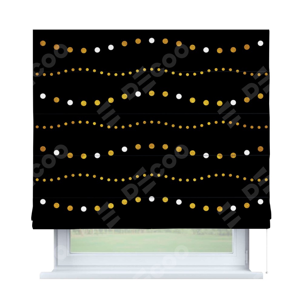 Римская штора производителя «Cortin», используется для проёма, пошита из ткани блэкаут с нанесением сублимационной печати «Яркие огоньки». Имеет универсальный механизм и подходит для монтажа: на потолок, на стену и в нишу.
