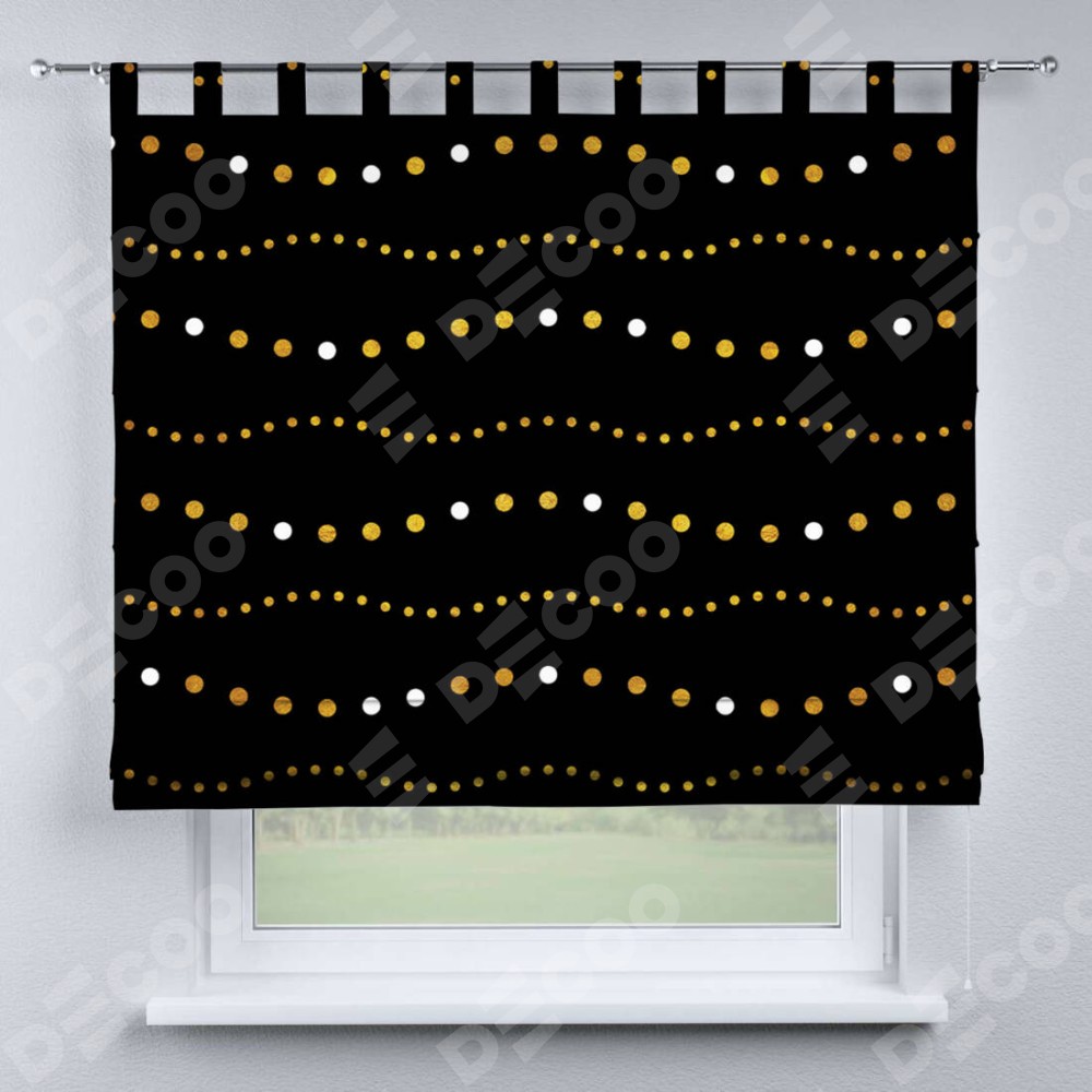 Римская штора производителя «Cortin», используется для проёма, пошита из ткани блэкаут с нанесением сублимационной печати «Яркие огоньки». Данная модель пошита на петлях, комплектуется на выбор круглым карнизом и подходит для монтажа на стену. Римская штора на петлях имеет простую систему регулировки высоты, отличительным преимуществом данной модели является простой способ монтажа. Достаточно повесить ее на трубу и штора готова!