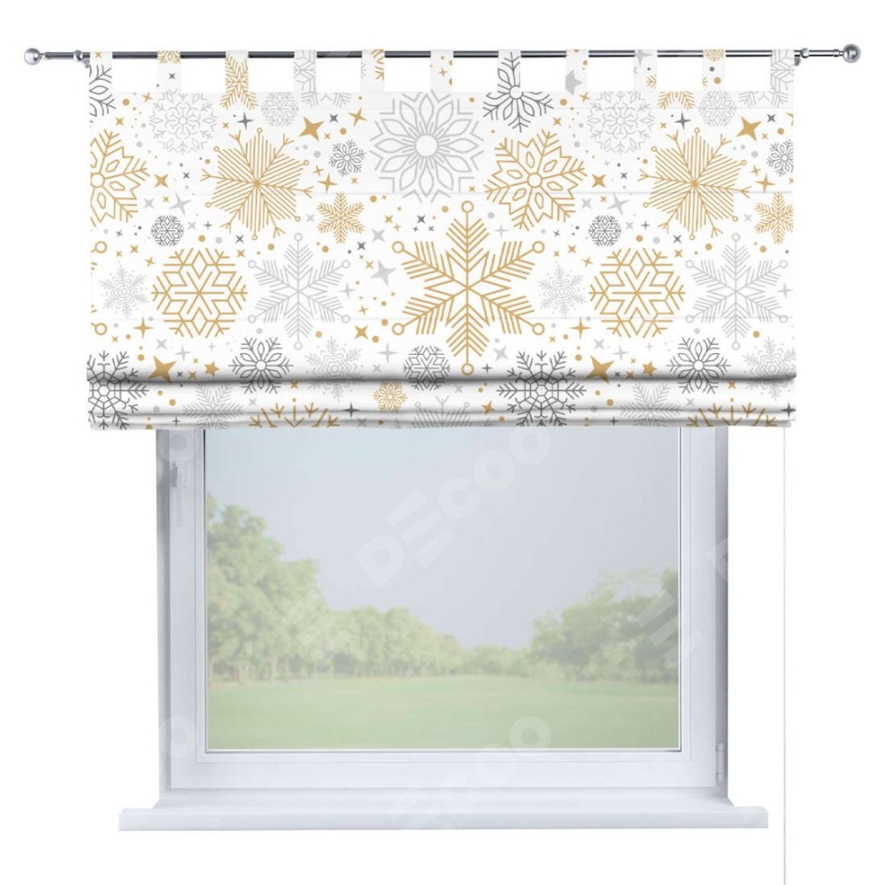 Римская штора производителя «Cortin», используется для проёма, пошита из ткани блэкаут с нанесением сублимационной печати «Снежное очарование». Данная модель пошита на петлях, комплектуется на выбор круглым карнизом и подходит для монтажа на стену. Римская штора на петлях имеет простую систему регулировки высоты, отличительным преимуществом данной модели является простой способ монтажа. Достаточно повесить ее на трубу и штора готова!