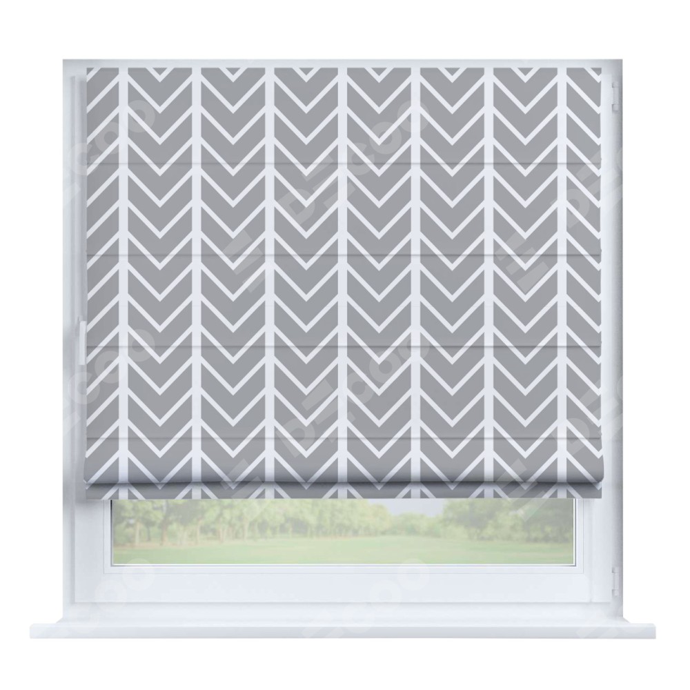 Римская штора производителя «Cortin», устанавливается на створку окна, пошита из ткани блэкаут с нанесением сублимационной печати «Современная геометрия». Штора шьётся по индивидуальным размерам, для данного типа римской шторы возможная ширина от 35 до 150 см., высота до 250 см.