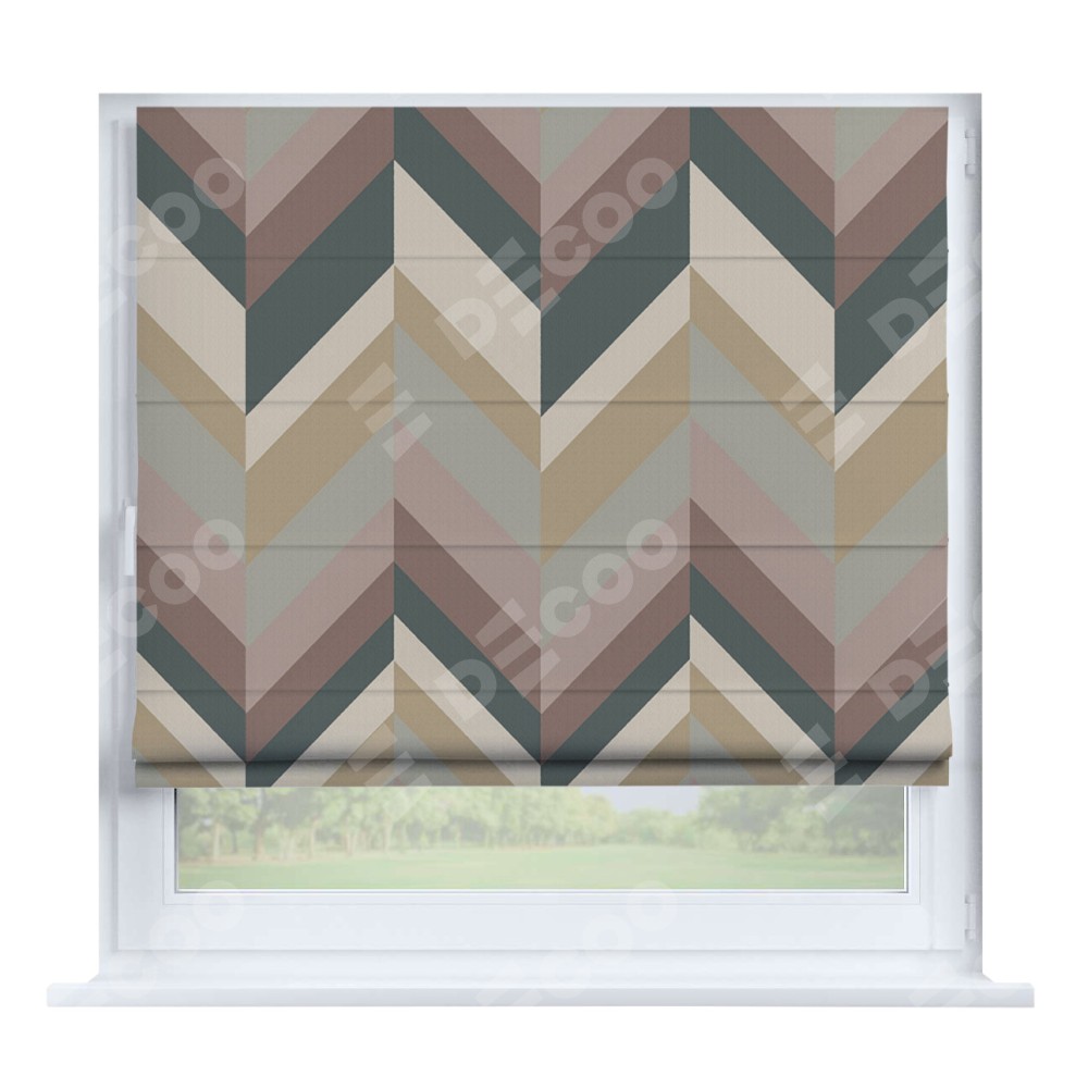 Римская штора производителя «Cortin», устанавливается на створку окна, пошита из ткани блэкаут с нанесением сублимационной печати «Шеврон Авеню». Штора шьётся по индивидуальным размерам, для данного типа римской шторы возможная ширина от 35 до 150 см., высота до 250 см.