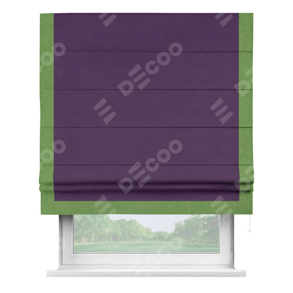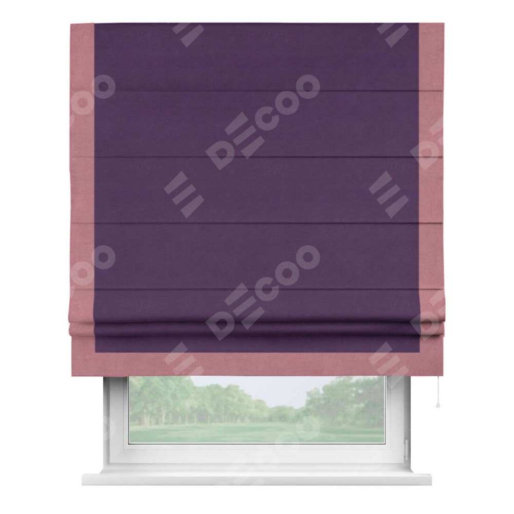 Римская штора производителя «Cortin», используется для проёма, пошита из ткани вельвет темно-фиолетовый, артикул ткани 17753. Отделка шторы кантом «Виктория», ткань для канта используется из вельвета разной расцветки на выбор. Имеет универсальный механизм и подходит для монтажа: на потолок, на стену и в нишу.